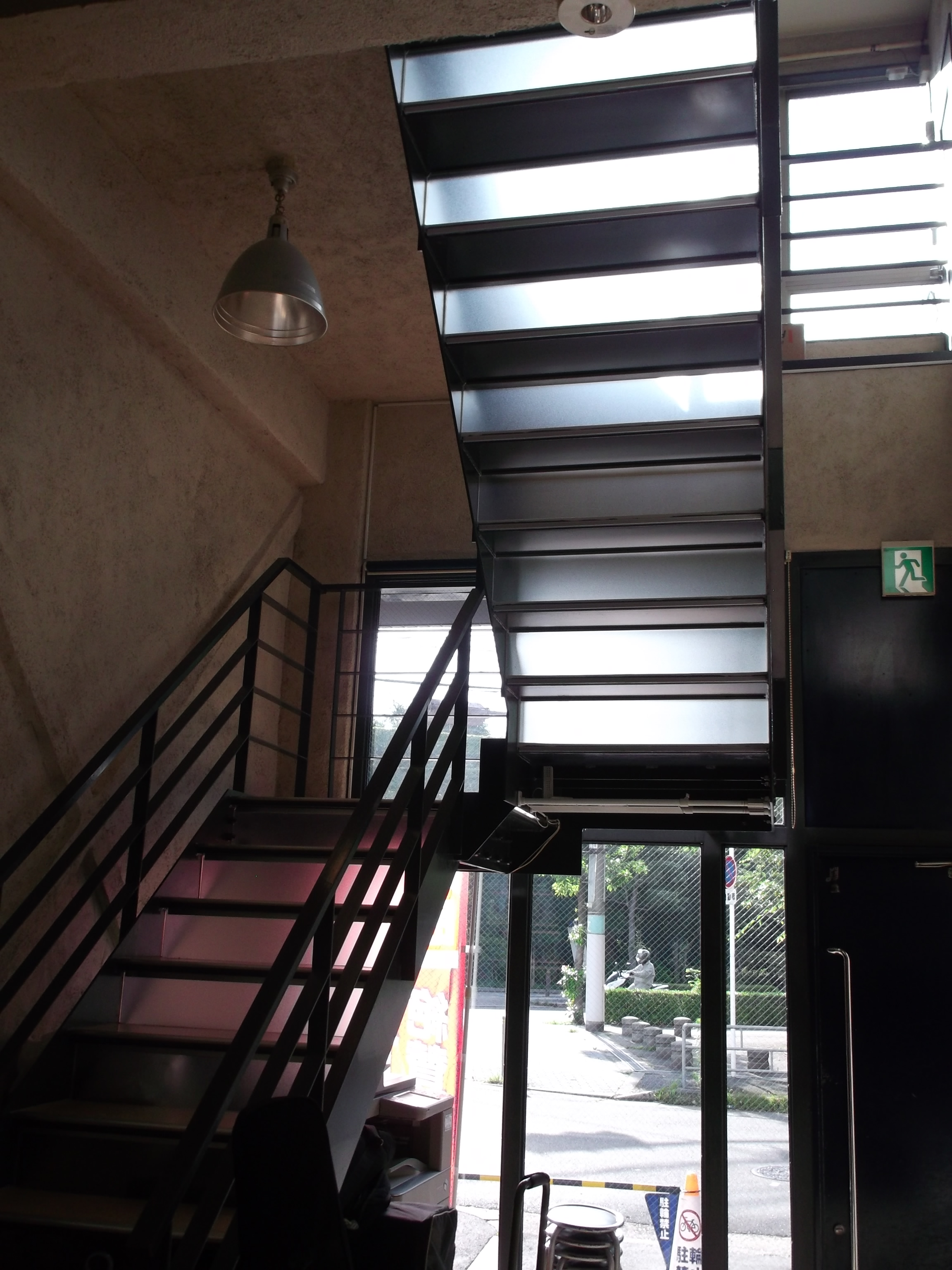 まずは階段から。気付きましたか?明り取り用の隙間にすりガラスが嵌って、直射日光が当たらなくなりました。